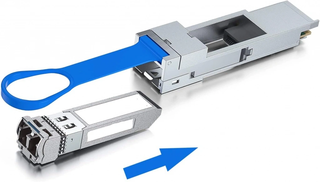 Switch üzerindeki 100G QSPP28 portuna 25G hızında MM Transceiver takmak için çeviri modül.